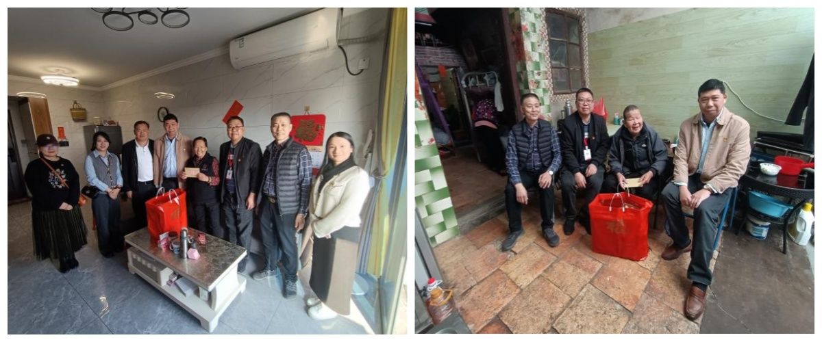在社区 “两委” 干部的带领下,帮扶团队逐一走进社区退休老党员的家中。每到一处,团队成员都与老党员们亲切交流,细致询问他们的身体状况、生活情况以及面临的实际困难。随后,帮扶团队为老党员们送上慰问品和慰问金,并致以真挚的新春祝福,让老党员们感受到浓浓的关怀与温暖。