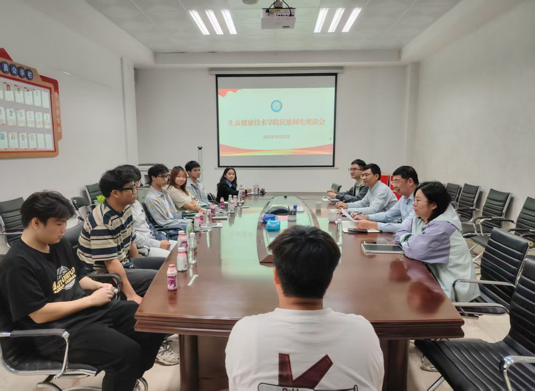 举行少数民族学生座谈会。学院党委书记谢炯标,党委副书记葛金虎,辅导员杨梅青、刘文渊及全体少数民族学生齐聚一堂,共话民族团结。