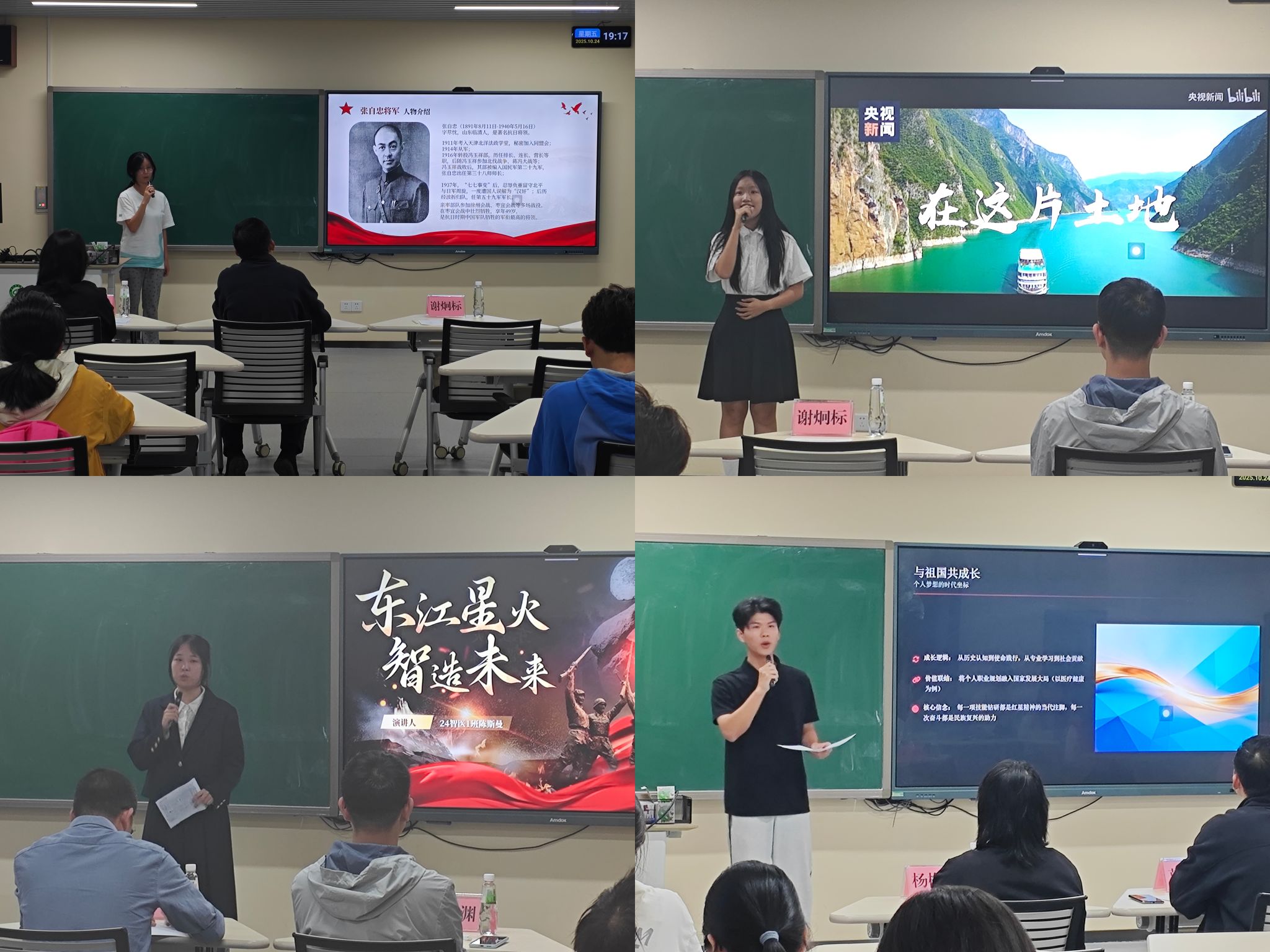 本次选拔赛紧扣“我和祖国共成长”主题展开。10位参赛选手围绕抗战时期英雄人物的感人事迹、新时代青年的家国情怀与使命担当、祖国日新月异的发展成就等三大方向展开故事讲述。他们精神饱满、情感真挚,讲述内容不仅精准贴合比赛主题,更传递出新时代大学生的理想信念与责任担当,是红色基因传承的生动体现。赛后,谢炯标勉励全体学生以本次选拔赛为契机,持续深入学习中国共产党人精神谱系,将“学、讲、行”有机融合,把红色文化的精神伟力转化为成长奋斗的实际行动,为实现中华民族伟大复兴的中国梦贡献青春力量。