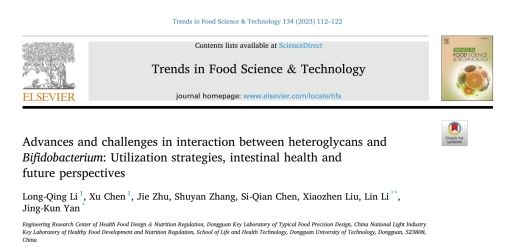 、食品营养健康工程与智能化加工研究中心在国际食品顶级期刊《Trends in Food Science & Technology》(Q1,IF=16.002)在线发表题为“Advances and challenges in interaction between heteroglycans and Bifidobacterium: Utilization strategies, intestinal health and future perspectives”的综述论文。论文的第一作者为李垄清副研究员,通讯作者为雷速体育-雷速体育app