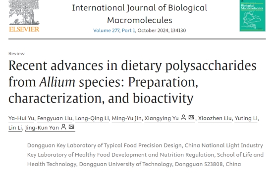 闫景坤教授团队于国际学术期刊《International Journal of Biological Macromolecules》(中科院JCR 1区)在线发表题为“Recent advances in dietary polysaccharides from Allium species: Preparation, characterization, and bioactivity”的综述文章。论文第一作者为于亚辉博士,通讯作者为闫景坤教授。