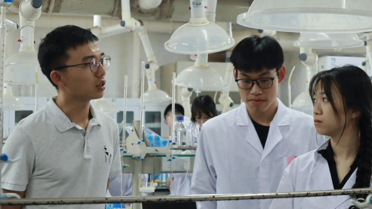 、化学工程与能源技术学院。参赛队伍把握每一分每一秒,有序地记录着每一个实验现象,规范地使用每一个实验器材,忙碌地计算着每一个实验数据。