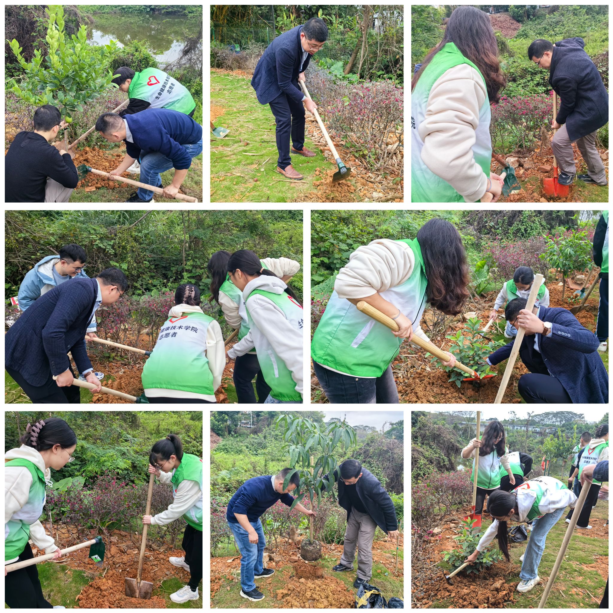 在学校培根园开展“学雷锋树新风 共筑绿色校园梦”植树活动。学院党委书记谢炯标、党委副书记葛金虎、学校心理中心刘勉老师及学院师生到场参与活动。