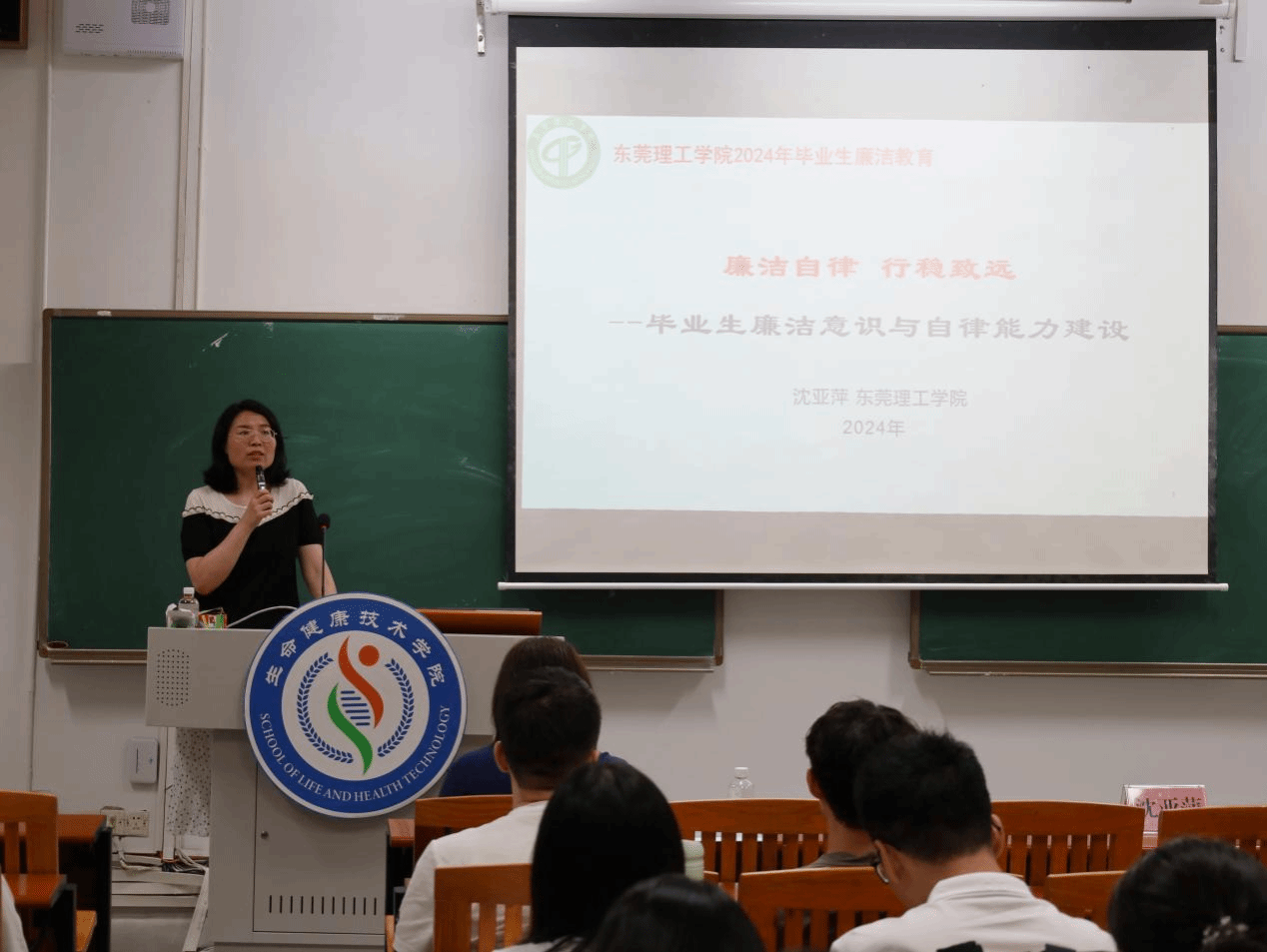 沈亚萍副教授以《廉洁自律 行稳致远——毕业生廉洁意识与自律能力建设》为题,结合真实案例从“廉洁自律的核心内容”、“廉洁自律的践行路径”两个方面展开论述,切实引导毕业生树立正确的世界观、人生观和价值观,守住清正廉洁底线,认认真真做事、清清白白做人。