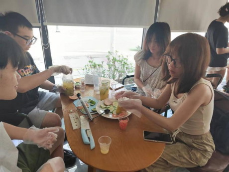 除讲座和学术报告外,本次实习还安排了烹饪与食品加工实操环节。8月1日下午,一场别开生面的食品制作实训在常品学院餐厅如火如荼开展。同学们亲自动手,体验了炒河粉、饺子、手打柠檬茶和杨枝甘露的制作过程,还相互品尝了不同组别的成品。实操活动不仅锻炼了同学们的动手能力,也增强了团队协作精神,为实习活动增添了乐趣。