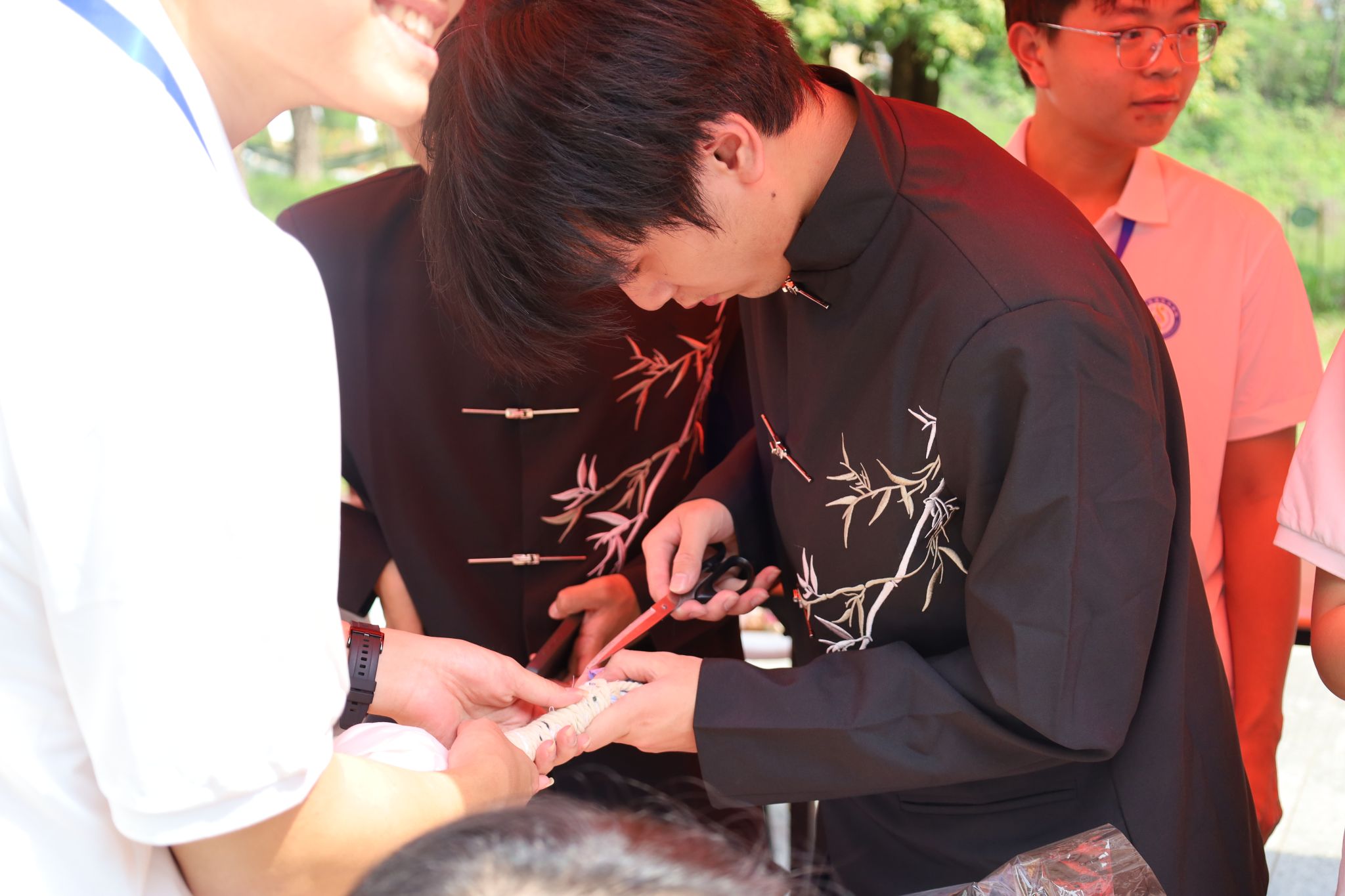 活动当天,现场热闹非凡,参与者们热情高涨。学院在传统文化游园会摊位设置了艾草锤DIY制作体验和中医养生知识小问答两个环节,吸引了广大师生的积极参与。在艾草锤DIY制作体验区,同学们亲手制作艾草锤,不仅深入了解了艾草的独特功效,还增强了动手能力,现场洋溢着欢乐的气氛。与此同时,中医养生知识小问答环节也备受青睐。答题互动体验区气氛热烈,现场同学通过趣味问答的形式,对八段锦和中草药有了更深入的了解,既收获了知识,又增添了乐趣。