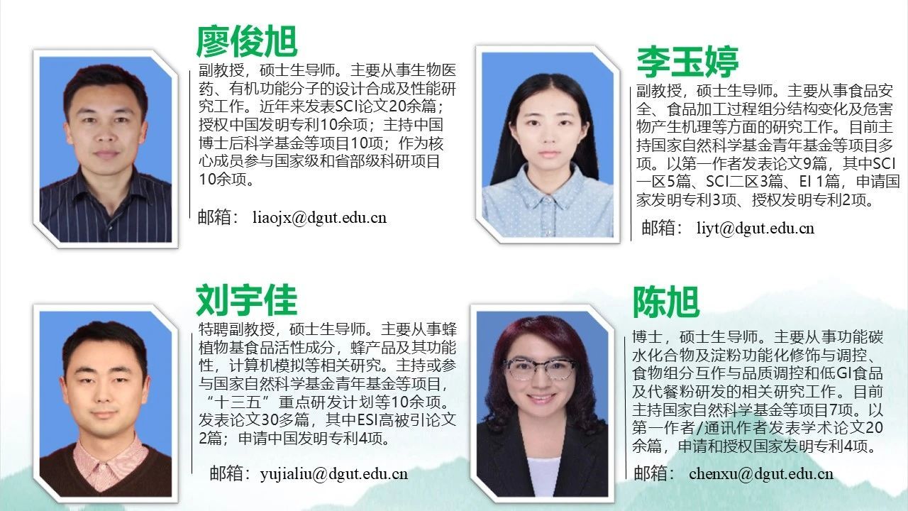 专业科研实力:生物与医药领域拥有实验室共5000 m2,现拥有中国轻工业联合会重点实验室、东莞市生物炼制技术重点实验室、食品营养健康与智能化加工研究中心、广东省实验教学示范中心等科学研究与教学平台,大型仪器设备总价值9000多万元。此外,毗邻学校的松山湖材料实验室、中国散裂中子源等大科学装置与平台共建、共用、共享智力资源,协同推进高素质应用型创新人才培养。近5年承担包括国家“十三五”重点研发计划课题等在内的项目56项,经费总额6200余万元,发表论文117篇,获国家级教学成果奖在内的省部级以上奖励2项。