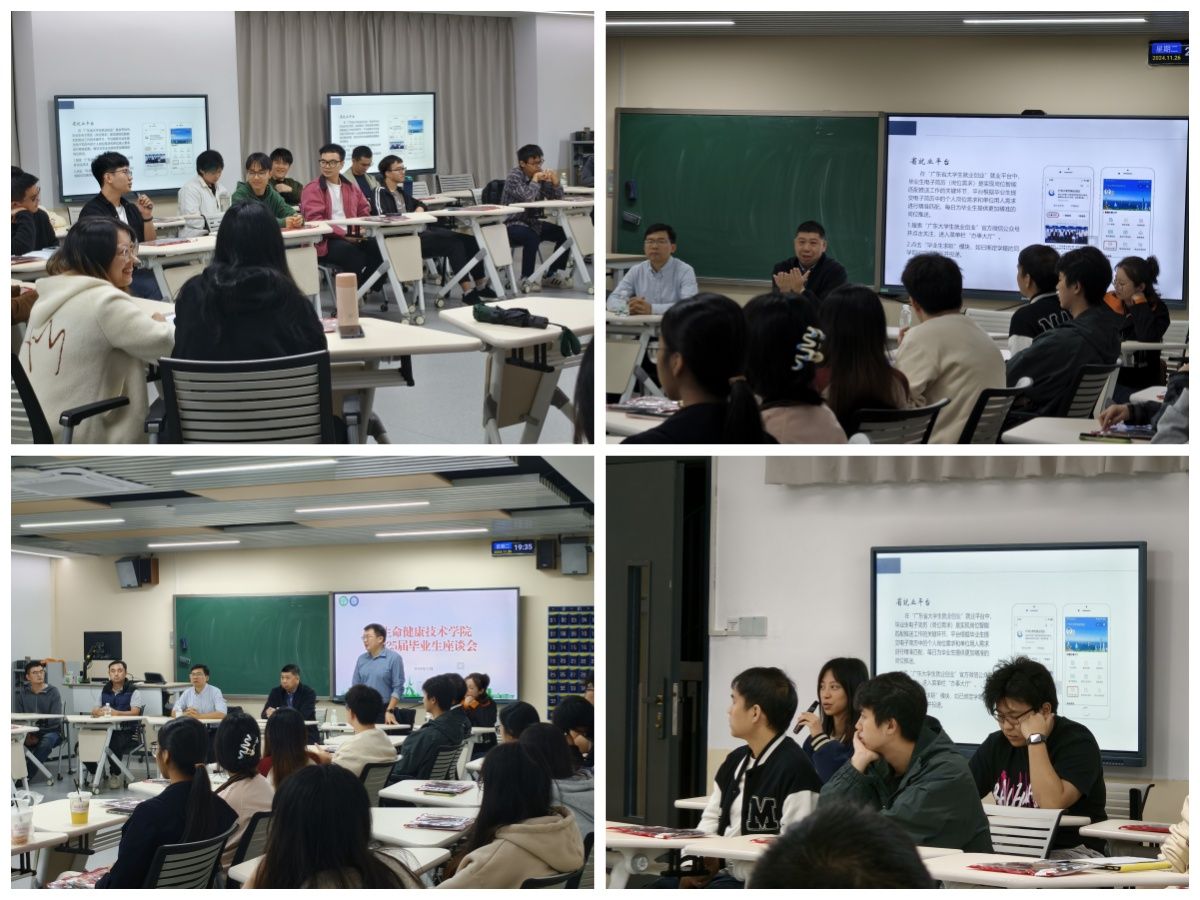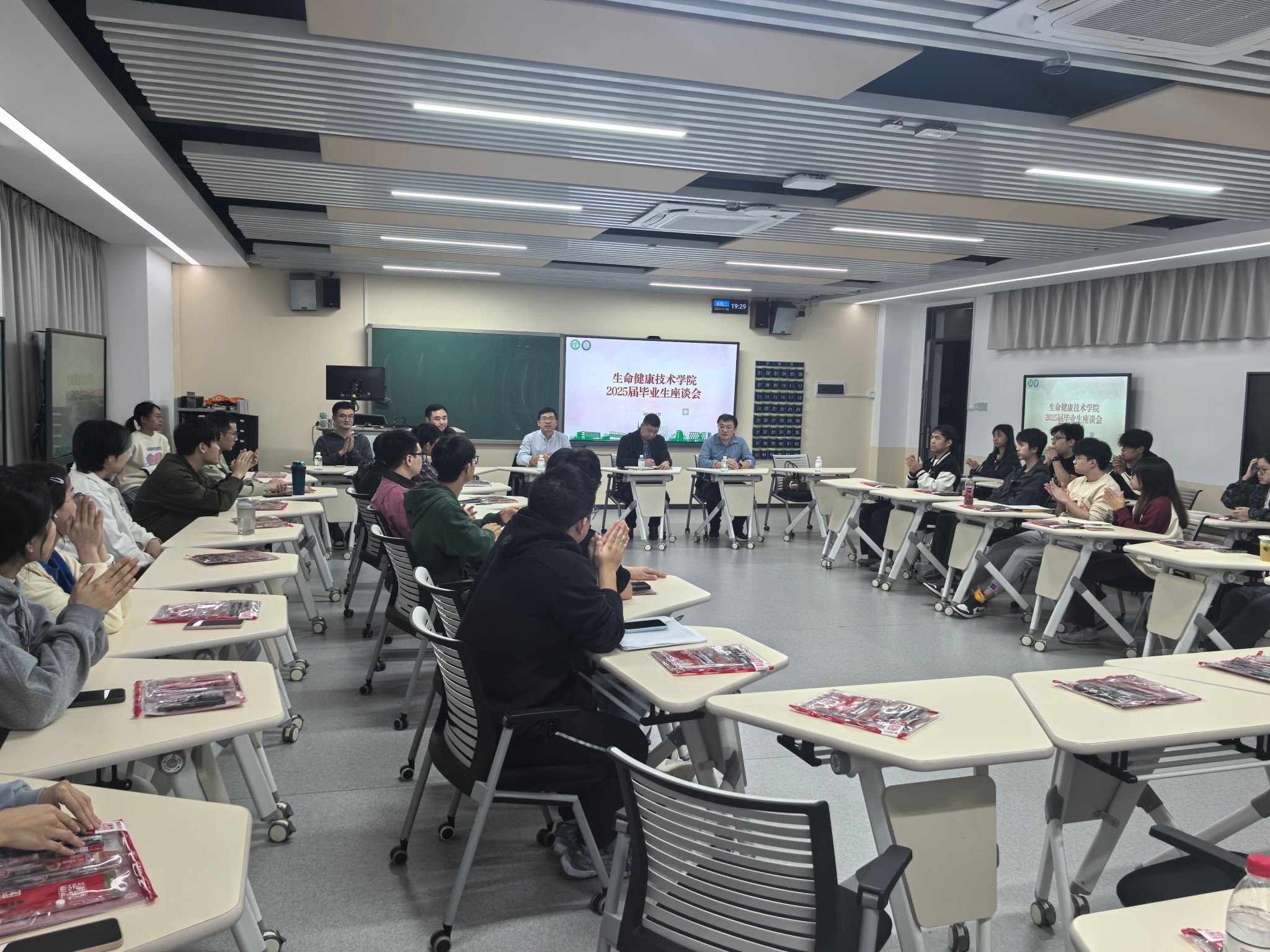 于11月26日晚在6D303举行2025届毕业生座谈会。学院党委书记谢炯标,党委副书记葛金虎,副院长闫景坤,营养与健康系主任刘宇佳,辅导员杨梅青、刘文渊及2025届毕业生参加此次座谈会。